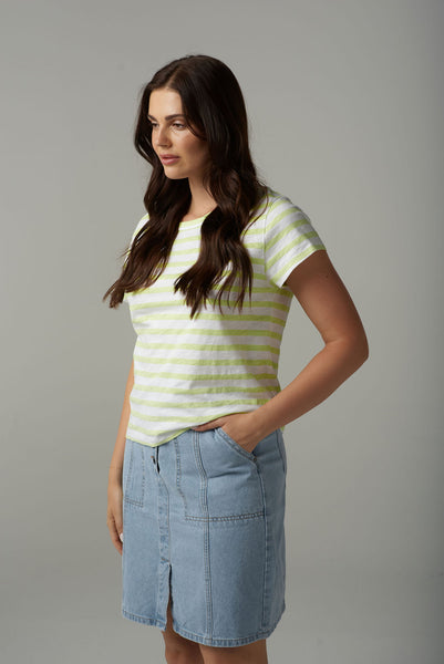 Cloth Paper Scissors - Stripe Basic Tee - White/Lime
