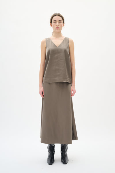Introducing the Silky Classic Skirt in Sandy Grey by In Wear.
