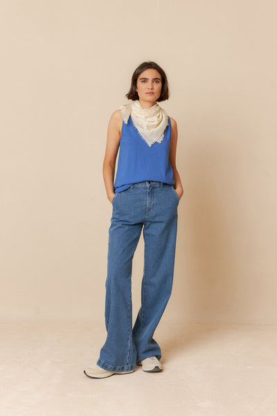 It's made of variegated cotton and linen fabric with a rustic effect and is designed to feel slightly loose.