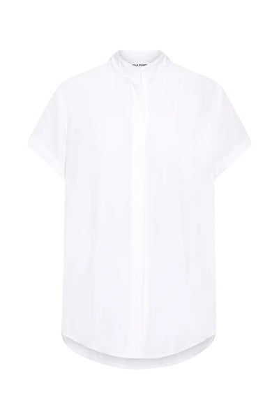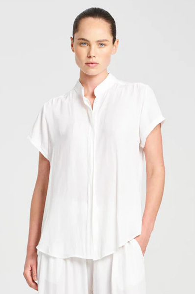 Cut from Mela Purdie's luxurious Mache fabrication, the Soft Stand Shirt features a petite stand collar and button placketing through the front—a classic wardrobe staple.
