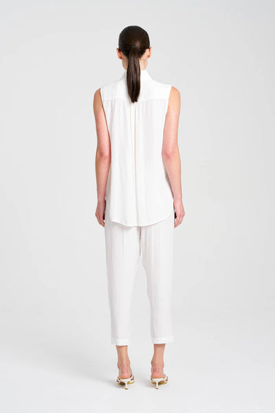 Cut from Mela Purdie's luxurious Mache fabrication, the Tab Slide Tank features a petite stand collar and button placketing through the front. This sleeveless shirt is designed for longevity, the perfect tactical layering piece.