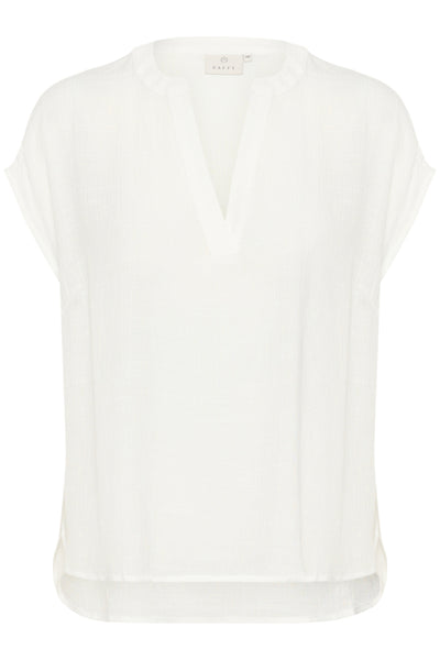 This Kaffe sleeveless top with a straight, relaxed silhouette and soft semi-sheer finish. Features a deep V-neckline with subtle collar detail. Perfect for layering and effortless style.
