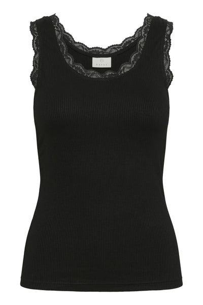 This Kaffe Ribbed tank top in Black Deep for women is with a slim fit and comfortable stretch.