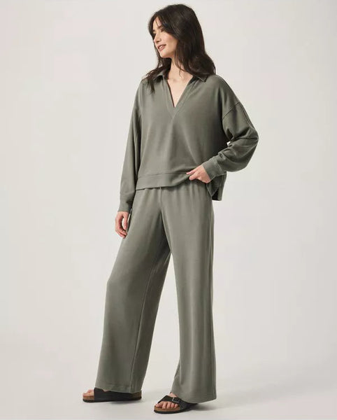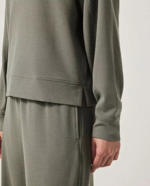 The Waffle Scuba Polo Sweatshirt in Soft Vob by Splendid combines the smooth feel of scuba fabric with the texture of a waffle knit for an elevated design yet cozy result.