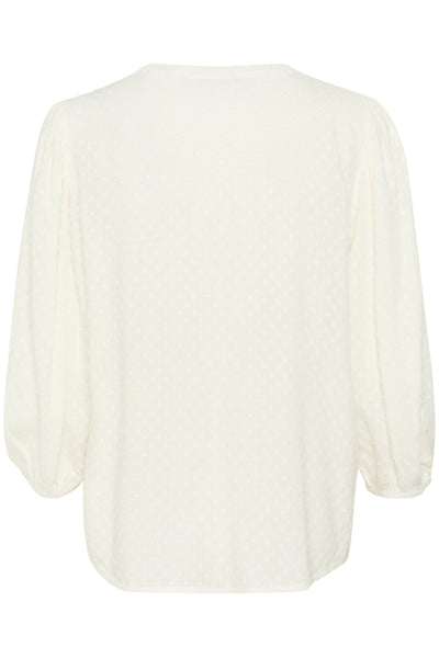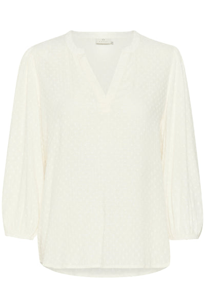 Blouse with relaxed fit and V-neckline by Kaffe, featuring soft 3/4 balloon sleeves and subtle textured fabric. Ideal for versatile, comfortable everyday style and easy pairing with jeans or skirts.