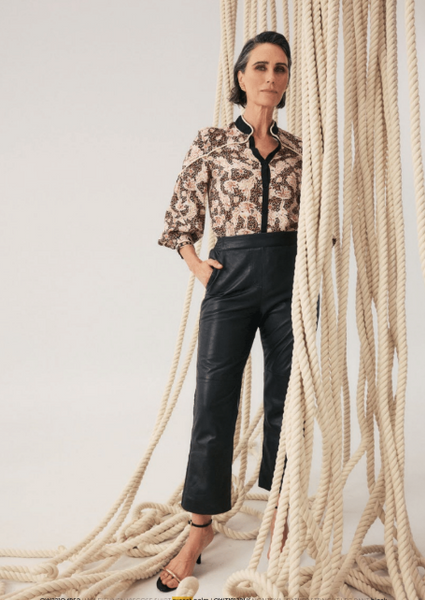 Introducing the Harley Linen Viscose Rope Trim Detail Shirt in Russet Palm by